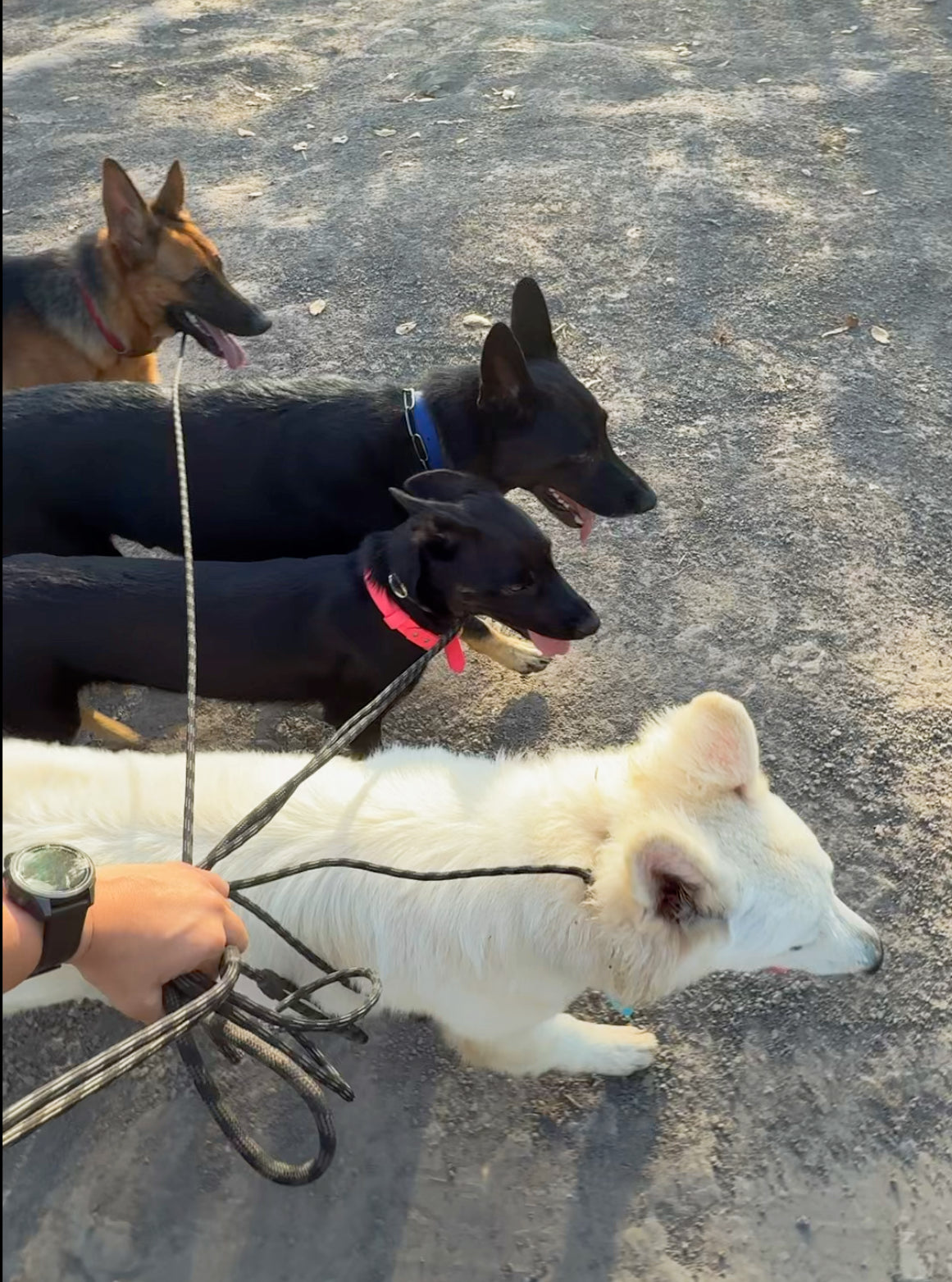 This structured approach builds confidence, discipline, and harmony within the group. Dogs learn to coexist peacefully, follow leadership, and make better choices - creating a calm, cooperative energy that carries over into everyday life at home and on solo walks.